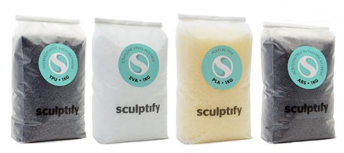 Sculptify為用戶提供9種材料的塑料顆粒,其中PLA、ABS、TPU、EVA馬上就能提供,而其他五種材料(HIPS、HDPE、尼龍、PC、實木復合)還需等待Sculptify針對他們的機器進行相應的優化。據天 工社了解,一袋Sculptify品牌的PLA或ABS塑料顆粒的價格為18美元每公斤,比市場上3D打印線材的價格平均低約50%。 而且Sculptify允許客戶使用第三方生產的塑料顆粒,這意味著更多的錢可以節省下。