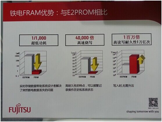 “唯一的不足是目前的最大容量只能支持到4Mbit,未來富士通半導體還會不斷推出更多新品,逐步實現大容量化。我們已經在著手研發8Mb的產品。”松宮正人透露。