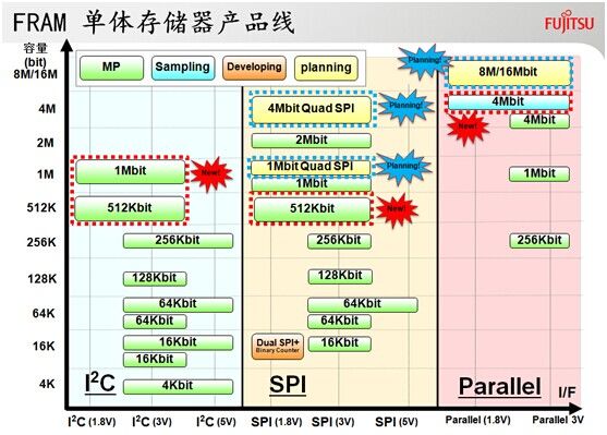 富士通半導體 FRAM產品線涵蓋SPI、IIC、并行接口