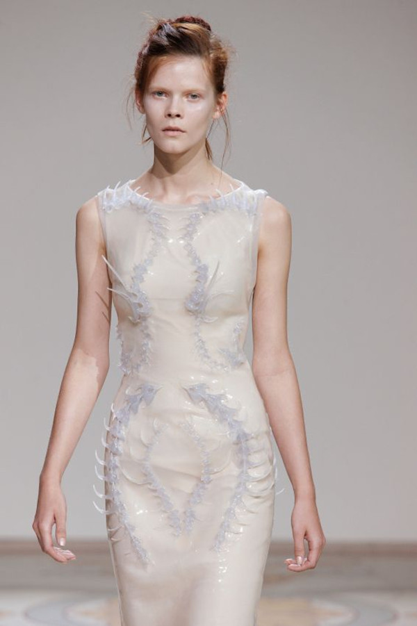 圖二:這條連衣裙是由很多通過3D打印的透明“布片”手工拼接而成。