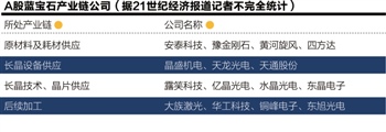 這僅是A股上市公司中的一例。據21世紀經濟報道記者不完全統計,截至2014年9月3日,有接近20家A股上市公司在藍寶石產業鏈上有所投資,而在今年上半年,這種動作尤為頻繁。