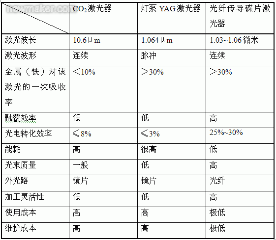 相對(duì)傳統(tǒng)的激光熔覆設(shè)備采用的激光器是CO2激光器和燈泵YAG激光器,通快公司采用的是新一代光纖傳導(dǎo)碟片激光器。同等條件下碟片激光器具有如下優(yōu)勢(shì):