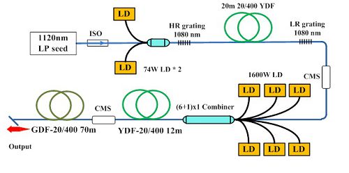 千瓦級摻鐿-拉曼集成的光纖放大器結構示意圖