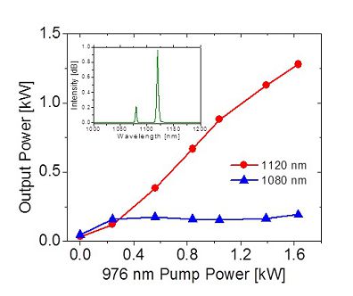 近期,中國科學院上海光學精密機械研究所空間激光信息技術研究中心馮衍研究員領銜的課題組,在高功率拉曼光纖激光器研究中取得新進展。提出了一種鐿-拉曼集成的光纖放大器結構,有效地解決了拉曼光纖激光器功率提升的主要技術瓶頸問題,在1120nm波長,首次獲得580W的單橫模線偏振拉曼光纖激光和1.3kW的近單模拉曼光纖激光輸出。