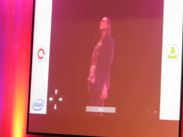 RealSense 3D照相機也非常簡單易用。 Krzanich和他的同事當場進行了簡短的演示:一個當場找到的模型被帶到了舞臺上,由Krzanich的助手對它進行掃描,沒有復雜硬件或幾十個攝像頭,該助手只是手持平板電腦繞著它轉了幾圈,幾分鐘后,該對象的3D渲染圖出現在了屏幕上。