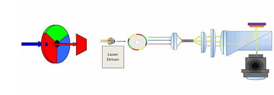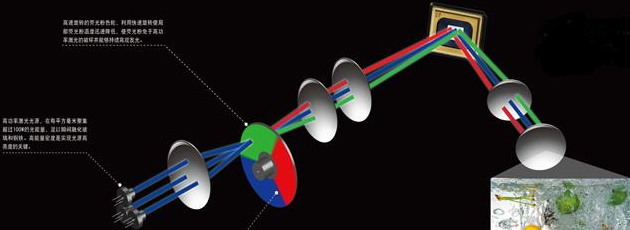 據(jù)了解,不論是ALPD技術還是海信自主研發(fā)的技術,實際上都是放棄了之前紅綠藍三色激光的使用,而轉(zhuǎn)向用成本相對較低的半導體藍色激光器所發(fā)出的藍色激光激發(fā)高速旋轉(zhuǎn)的熒光粉輪,從而形成不同顏色光源的方案,只是他們各自在內(nèi)部細節(jié)上有所不同。