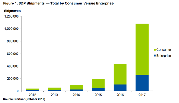 根據知名市場研究公司Gartner的最新預測,全球3D打印機(3DPS)的出貨量將從2014年的108151臺猛增至2015年的217350臺。2015年至2018年之間,全球3D打印機出貨量每年將增長一倍以上,到2018年達到230萬臺。