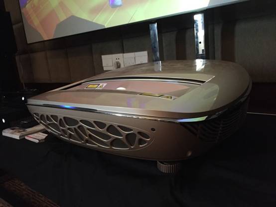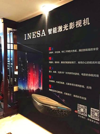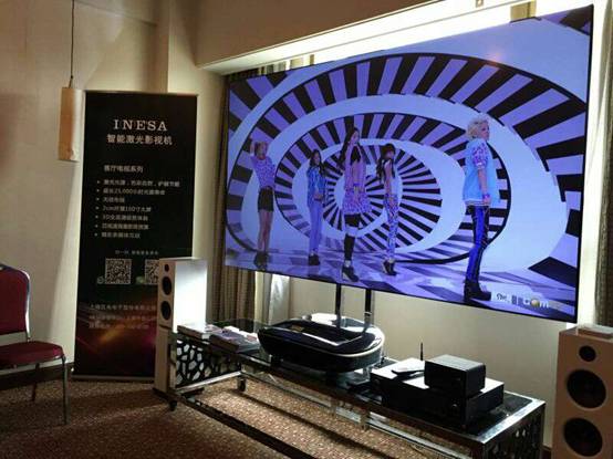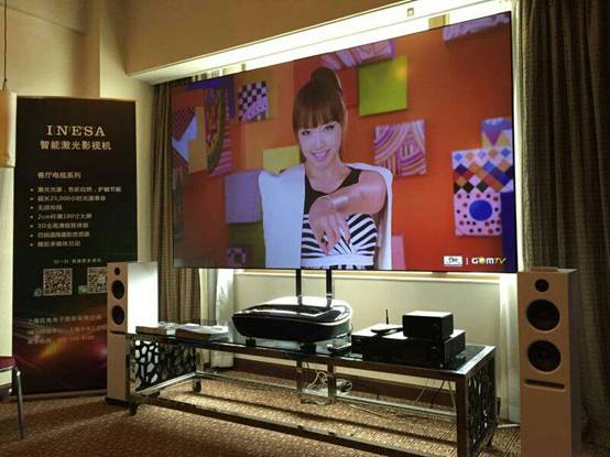 原來儀電電子(INESA)正在向大家展示他們最新的高端智能產品——INESA智能激光電視,該產品具有100”的超大無源光學增強屏,具有超短距投射比,清晰的畫面和大氣高端的外表正是它可以吸引眾多觀眾的原因之一。