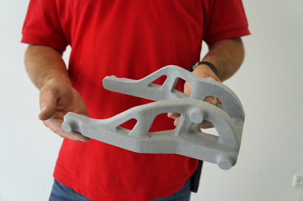 打印過程完成后,該部件可以從松散粉末中取出。為了正確地進行清潔,需要風(fēng)吹或噴砂處理。在一個對流烘箱中完成一個簡短的硬化階段過程。