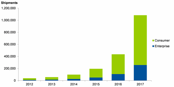 圖4 Gartner對3D打印機(jī)出貨量的預(yù)測