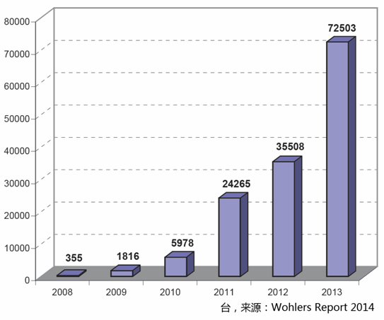 圖5 Wohlers Report 2014 統(tǒng)計的個人3D打印機(jī)銷售量