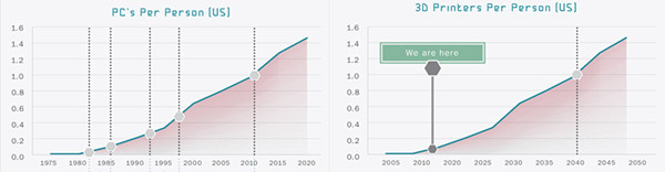 圖7 Industry Week對3D打印機(jī)和個人電腦的發(fā)展的對比。