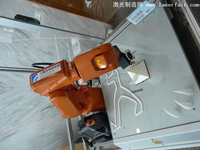 當(dāng)日,臺灣島內(nèi)第一臺以工業(yè)用機(jī)械手臂設(shè)計(jì)的大型化FDM 3D打印機(jī)也同時(shí)亮相,可用于打印大尺寸工件;該機(jī)采用熱熔融沉積(FDM)技術(shù)將ABS、HIPS、PLA塑料線材,經(jīng)加熱融化通過微細(xì)孔徑噴頭層層打印,并結(jié)合成型底板溫控技術(shù),可克服目前小型個(gè)人化3D打印機(jī)僅能打印約20公分立方、特殊工件耗費(fèi)支撐材料及容易翹曲變形的缺點(diǎn)。且具六軸運(yùn)動功能,可解決3D打印機(jī)以X、Y、Z 三軸打印層積無法多角度打印的限制,增加了打印的彈性,并可節(jié)省支撐材料,將來可替代大型木模的開發(fā),節(jié)省1/3時(shí)間及20%成本。
