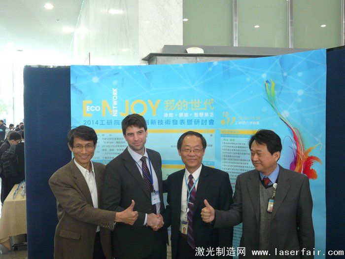 增材制造與激光應(yīng)用中心主任洪基彬(左起)、荷蘭TNO Greg Hayes manager、南分院副執(zhí)行長曹芳海、經(jīng)理吳宗明為成立3D打印國際研發(fā)平臺見證。