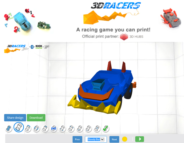 而近日,3DRacers團隊推出了一個基于Web的3DRacers在線編輯器,可以讓用戶定制和3D打印一個更小版本的3DRacers賽車(沒有電子)。