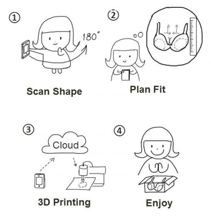 客戶的要求和視頻會通過云計算平臺提交給Joyfit,其中的數據將由專門的軟件處理成可打印的形狀。最后,3D打印機會根據模型文件用硅膠打印出胸罩填充物,不過目前尚不清楚她們使用的是什么樣的3D打印機。