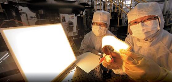 韓國廠商LG化學研發超薄型OLED照明,厚度僅0.1mm像紙張,方型的照明亮度十足,電力僅需舊式照明的1/10,可能創下最高水平電力效