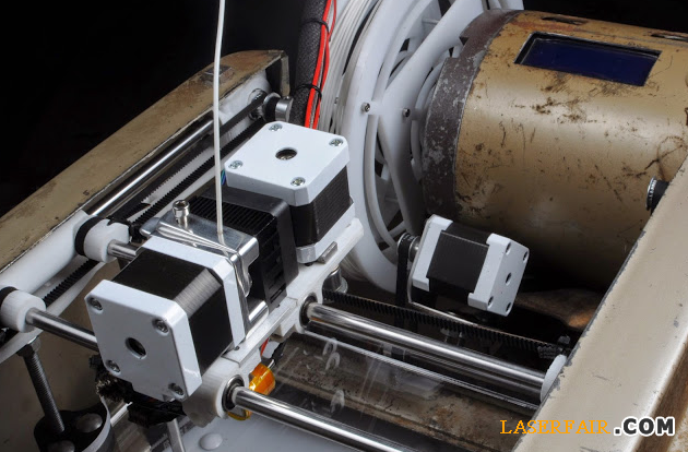 當這臺3D打印機最終被組裝出來,展現在人們的眼前時(見下圖),真的給人一種時空錯亂的感覺:半個世紀以前銹跡斑斑的鋼鐵鑄件上安裝著最新科技的產品,與其說它是一臺3D打印機,倒不如說它是一件后現代的藝術品。