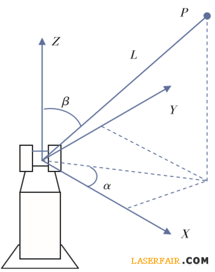就可得到點的空間三維直角坐標(x、y、z )[2-3]。