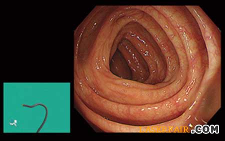 攝像頭的視角達到170度,支持自主的“NBI(Narrow Band Imaging,窄帶光觀察)”。一般情況下使用由紅藍綠組成的白色光,而NBI使用藍色光和綠色光,不用紅色光。這樣,容易看清粘膜表面的血管,便于發現病變。