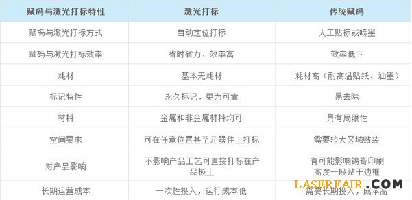 以下為電路板激光打標(biāo)和傳統(tǒng)賦碼方式的優(yōu)劣勢(shì)對(duì)比