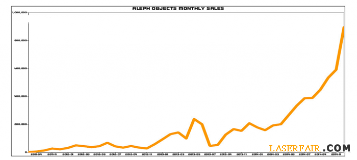 近日,知名3D打印機品牌LulzBot的生產商Aleph Objects宣布,在過去3年里,該公司的3D打印機產品銷售額增長了809%。2012年,該公司實現了523706萬美元的銷售收入,主要是桌面3D打印機的銷售帶來的。而到2014年,這一數字增長超過八倍,達到了4761390美元。盡管整個行業增長都很快,同時期全行業桌面3D打印機的銷售增長在300-450%左右,這仍舊意味著Lulzbot的增長速率是整個3D打印行業的兩倍。