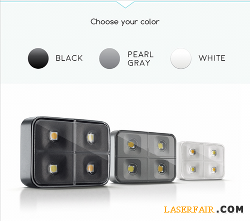 Iblazr 2分為黑、白、灰三色,大小為40mm*28mm*10mm,重20克。易于攜帶,且可通過其自帶的夾子固定在手機等拍照設備上。