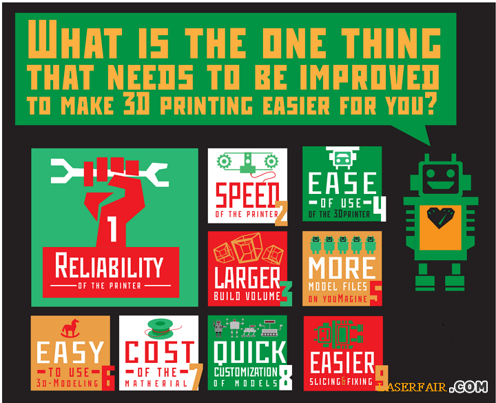 該調查的主要結果是,用戶們最為關注3D打印機的可靠性,受訪者同時表示,為了提高3D打印的整體體驗,更好的軟件、電子、材料和機械設計必不可少。