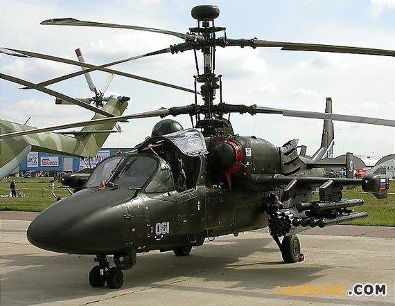 卡-52“短吻鱷”是俄羅斯卡莫夫公司研制的共軸反轉全天候戰斗直升機,它集偵察、攻擊與空戰于一身。2008年12月,俄羅斯購買一批卡-52直升機;2012年俄羅斯采購30架裝備空軍;2013年,俄羅斯購買一批海軍型卡-52直升機,代號為卡-52K,用于裝備向法國購買的“西北風”級兩棲攻擊艦;2015年俄東部軍區接收了20架卡-52,預計最終生產140架。
