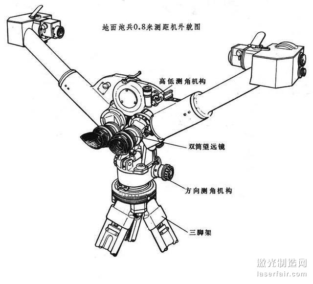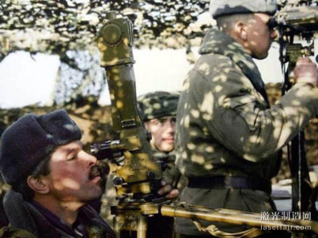 炮兵要想打得準確,很大程度上,要看測距的準確性。1888年英國人斯特勞德發明了單眼合像式測距機。1892年法國格魯西利爾設計出雙眼體視測距機,但誤差較大,到第二次世界大戰時,出現了不失調的體視測距機,受環境影響小,提高了測距精度。20世紀60年代出現了炮兵激光測距機,體積重量較大。到了1977年,美國首先研制成功世界上第一臺炮兵輕便手持激光測距機,型號為AN/GVS-5型,該機外形結構首次采用了適宜手持的雙目望遠鏡式結構,外形大小與一具標準的7X50軍用雙目望遠鏡相當,總重量僅2公斤。此后,應用AN/GVS-5的研制成果,很多國家都相繼研制出類似于AN/GVS-5的多種型號的手持激光測距機裝備部隊,如挪威研制,并由英國改進生產的LP-7型激光測距機,被確定為北約部隊的正式裝備。