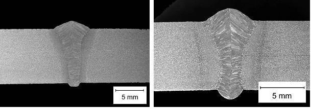圖7:結構鋼HSLA65的對接接頭焊接圖示,左側為8毫米單面焊,右側為16毫米雙面焊