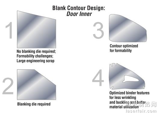 卡里斯坦說“在沖壓時,這些曲線形的坯料更有助于金屬的流動,而且會減少變薄的程度。”