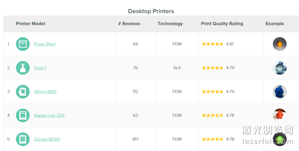 具體說來,在評價最高的桌面3D打印機排行榜上,Prusa Steel仍然占據頭名,Form1緊隨其后,從上個月的第5名升至第2,而H480與Form1幾乎一樣的評分屈居第3。