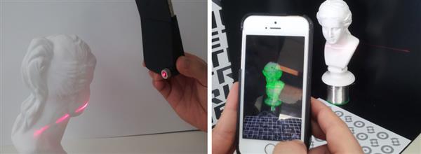 本周早些時(shí)候,在首爾舉辦的K-ICT 3D打印大會上韓國電子通信研究院(ETRI)展示了他們開發(fā)的兩款可快速生成3D打印文件的3D掃描設(shè)備:一款是使用方便的高品質(zhì)手持式3D掃描儀,另一款成本很低的手機(jī)附件,但它可以使智能手機(jī)具備3D掃描功能。