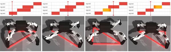 用戶任何影響運動的選擇(例如腿數(shù)目)都可以在屏幕中的模擬運動中表現(xiàn)出來,使其能夠檢測設計改變的效果。“尤其是,用戶可以改變其腿部站立和擺動的持續(xù)時間,以及改變其落腳的先后順序等。而我們的軟件提供的即時反饋使得用戶可以以交互的方式調整其走路模式,以找到滿意的解決方案。”他們寫道。通過這些數(shù)據(jù),系統(tǒng)會自動計算出其余的部分。研究人員在此過程中使用了該領域機器人的優(yōu)化模型(簡化的動力學模型),而這些也經(jīng)常會在模型預測控制(MPC)中使用。
