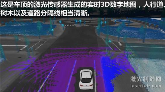 這套激光傳感器利用激光,掃描車輛周圍障礙物的距離,并可分析任何可見的反射光——這似乎具備了一些人類肉眼的仿生學概念,能讓自動駕駛系統分辨出道路上的分隔線以及斑馬線等等。就像科幻電影中的激光3D掃描,掃描之后會在電腦內生成一套即時變化的數字3D地圖,供自動駕駛系統辨認路況所用。