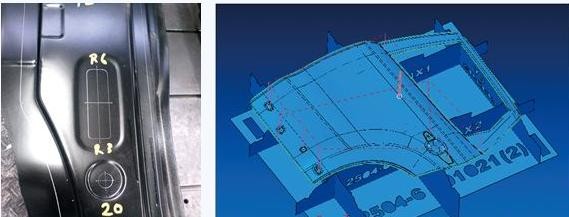 圖2三維切割前刻線件手工標示圖3插板式支架切割車門外板
