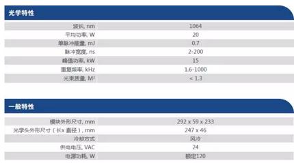 YLPN-0.7-2x200-20-SM納秒摻鐿光纖激光器可提供脈寬范圍為2-200 ns、峰值功率最高可達11 kW;2-200 ns脈沖寬度可調。該激光器可直接外部觸發,在整個1.6-1000 kHz重復頻率內,單脈沖能量可達0.7 mJ,平均功率可調節,最高為20 W, 平均功率獨立于單能量可單獨調節。該激光器配備光隔離器,保證高輸出功率穩定性的同時,可以加工高反光材料。