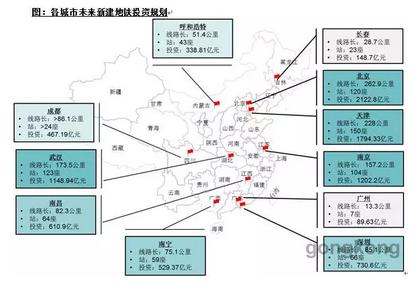 2015年5月至今,中國新獲得批準的地鐵建設項目涵蓋了深圳、天津、北京以及南寧、成都、南昌、南京、長春等11個城市,線路總計1300多公里,投資9000多億元。