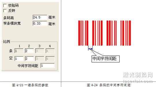 中間字符間距:個別條碼規定字符與字符之間有一定的間距(例如 Code39)。該參數用來設置此值,如圖4-24所示。
