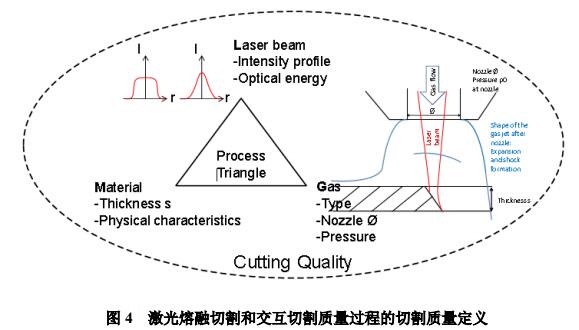 基于聚焦激光束與切割前端的相互作用,定義材料中激光束能量依賴波長特征吸收為熱過程,如圖 4。可用的能量會加熱、熔化、部分汽化以及液化材料。