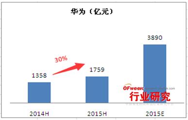 華為2015年上半年實現銷售收入1759億人民幣,較上一年同期的1358億人民幣增長30%,營業利潤率18%。而在最近迪拜舉行的華為網絡峰會上,華為表示預計2015年全球營收增長超過29%,達到600億美元以上。華為去年的總營收為465億美元。