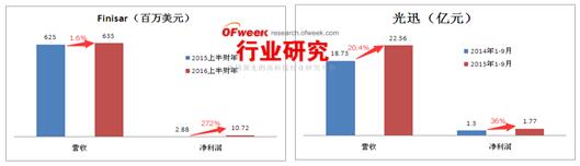光器件子行業在光通信產業鏈上競爭最為激烈,全球全十的供應商占到全球市場份額的63.22%。除了排名第一的Finisar超過全球市場份額的10%,其他都低于10%。國內供應商的市場份額都有所上升,中國已經有兩家企業進入全球前十。光迅更是首次超過Oclaro進入全球前五,市場份額達到5.36%。
