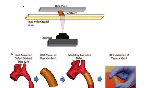 3D打印時,研究團隊使用的是DLP光固化快速成型技術,他們根據MRI和CT影響資料使用SolidWorks軟件設計出3D模型,然后使用基于DLP技術的EnvisionTEC Perfactory P4 3D打印機打印出定制的血管植入物。“3D打印的植入物有效長度為7毫米,寬為2毫米。”研究人員補充道。