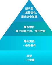 而通常在談到增材制造的時(shí)候,不論是制造業(yè)還是增材制造行業(yè)本身都容易過于關(guān)注生產(chǎn)效益,而忽略了綜合效益。而增材制造的價(jià)值臺(tái)階:原型與模具,備品備件,復(fù)雜零件,創(chuàng)新產(chǎn)品,在不同的臺(tái)階中生產(chǎn)效益的價(jià)值或許相似,然而綜合效益的價(jià)值卻是隨著臺(tái)階的升高而越來越大。