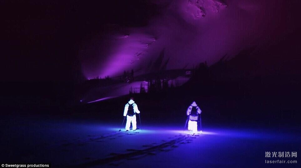 據《每日郵報》報道,一段視頻中,一隊滑雪者身著由7000只LED燈裝飾的服裝,從彩色聚光燈照射下的斜坡滑下,展示高科技照明給滑雪帶來的絢爛。