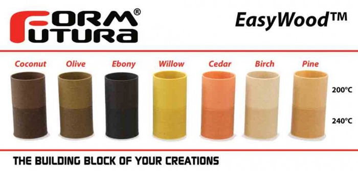 在過去一年里,該公司為其木質3D打印線材系列EasyWood增加了三款獨特的產品Coconut(椰子)、Olive(橄欖)和Ebony(烏木),大受市場歡迎。由于這三種木質線材的成功,如今,Formfutura又發布了4種新型的木質PLA EasyWood線,使該公司可供選擇的木質3D打印線材達到了7種之多,每一種都代表了一個不同類型的木材。