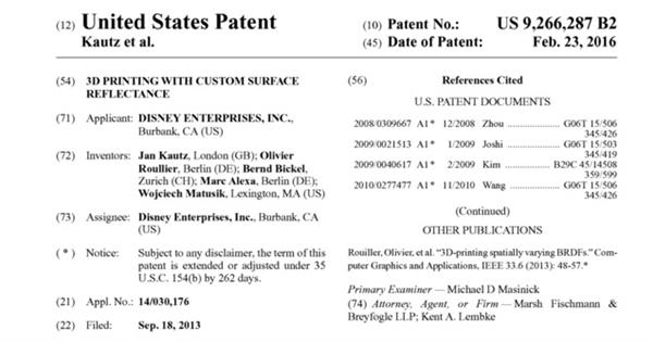 迪斯尼獲得可定制表面反射率的3D打印技術(shù)專利