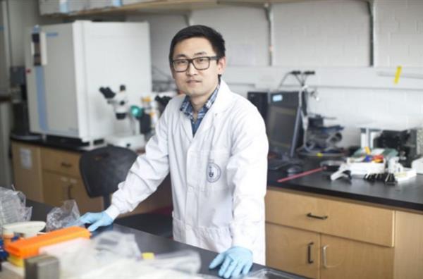 多倫多大學(xué)的研究員Boyang Zhang在他的實(shí)驗(yàn)室里,他在那里開(kāi)發(fā)AngioChip。