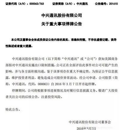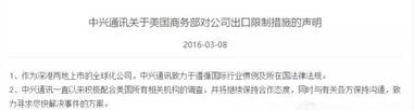 路透社報導,美國企業并非被完全禁止向中興及其下屬公司供應元器件,但需要申請出口許可證。這將使中興通訊難以購買美國產品,因為中興通訊的供應商必須申請出口許可,才能將美制器材或零件出貨給該公司。(所謂出口限令是指美國供應商在向中興通訊出口任何貨物前,均需向美商務部申請許可。但通常而言,這些申請會被拒絕。)